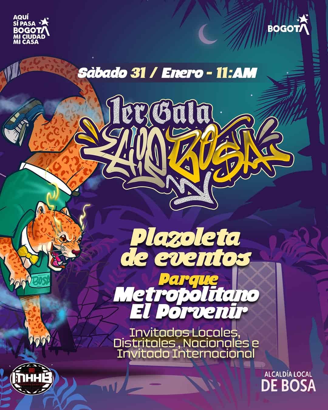 La cultura Hip Hop se apodera de Bosa en la 1ra Gala #HipBosa. Este evento reúne a MC’s, DJs, Bboys, Bgirls y artistas locales, distritales, nacionales e incluso un invitado internacional. Es una jornada llena de talento, arte y cultura urbana. No te pierdas esta oportunidad de ser parte de la historia del Hip Hop en Bosa, Bogotá.