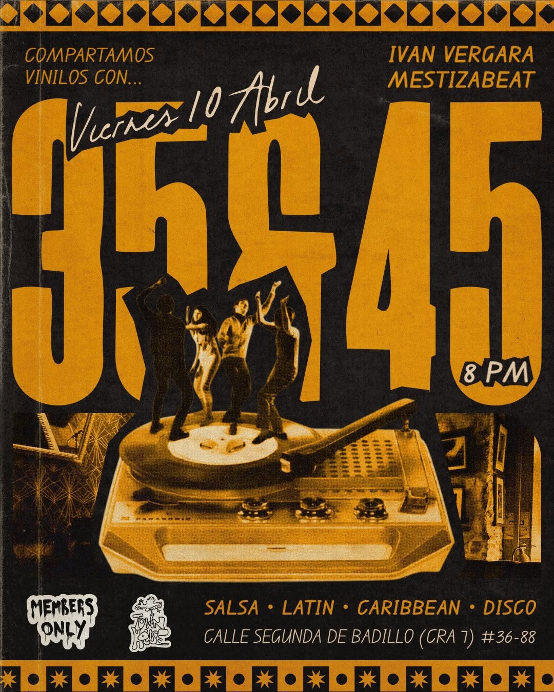 45045 es una noche dedicada a los vinilos y a los sonidos salsa, latin, caribbean y disco en Members Only Cartagena. El evento reúne a Ivan Vergara y Mestizabeat en un formato íntimo con música en vivo, burlesque y coctelería de autor en Cartagena. Una experiencia nocturna diferente para quienes disfrutan descubrir selecciones en vinilo y una atmósfera sofisticada alrededor de la cultura musical.