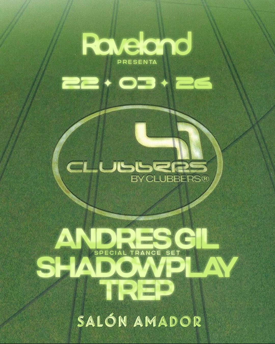 4 CLUBBERS BY CLUBBERS es una noche de DJ set y clubbing en Salón Amador, Medellín, presentada por Raveland. El evento cierra el fin de semana con sonidos de trance y hard house, destacando un special trance set de Andrés Gil junto a Shadowplay y Trep. Es una experiencia ideal para amantes de la música electrónica que buscan un ambiente intenso y energético en uno de los venues más reconocidos de la ciudad.