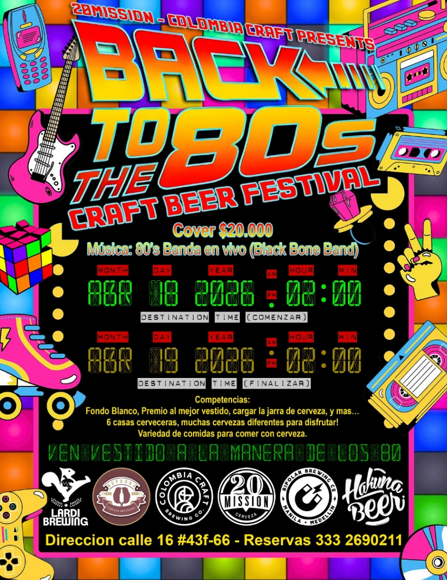 Festival de cerveza artesanal de los 80. Gran variedad de cervezas artesanales de 6 cervecerías. Música en vivo y concursos. Cover $20.000.