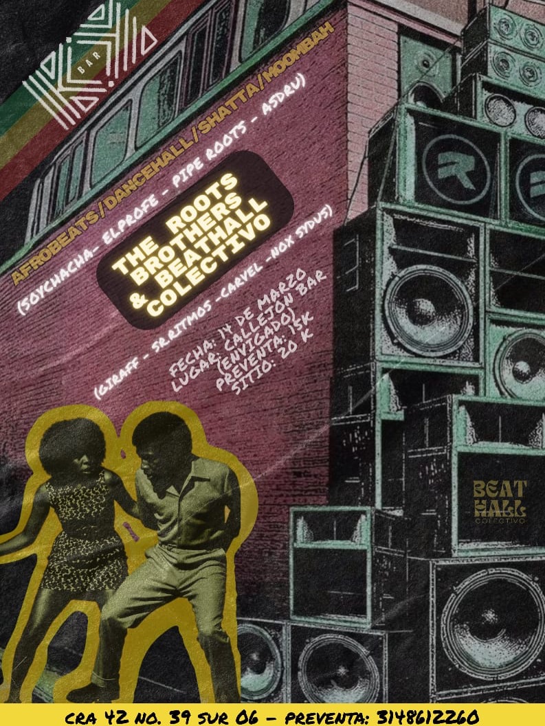 El Callejon Envigado presenta una noche de baile con enfoque en ritmos Afro y Dancehall, protagonizada por Beathall Colectivo y The Roots Brothers en Envigado, cerca de Medellín. Este evento de baile reúne equipos que se enfrentarán en la pista con coreografías y energía urbana, ideal para amantes del dancehall y la cultura afrocaribeña que buscan un parche nocturno intenso y lleno de sabor musical.