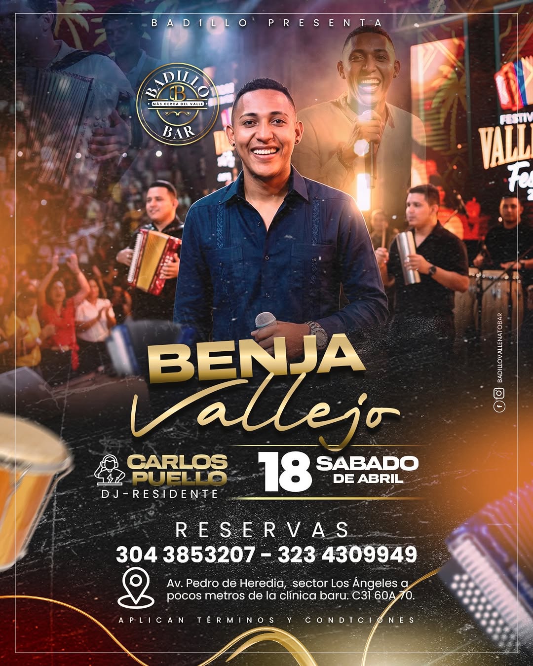 Benja Vallejo llega a Badillo Vallenato Bar con una presentación en vivo que promete una auténtica parranda vallenata en Cartagena. Este concierto ofrece un ambiente exclusivo para disfrutar de clásicos y éxitos del género, acompañado por la energía del público y la propuesta musical del artista. Un plan ideal para ir con el parche y vivir una noche de vallenato en vivo en la ciudad.