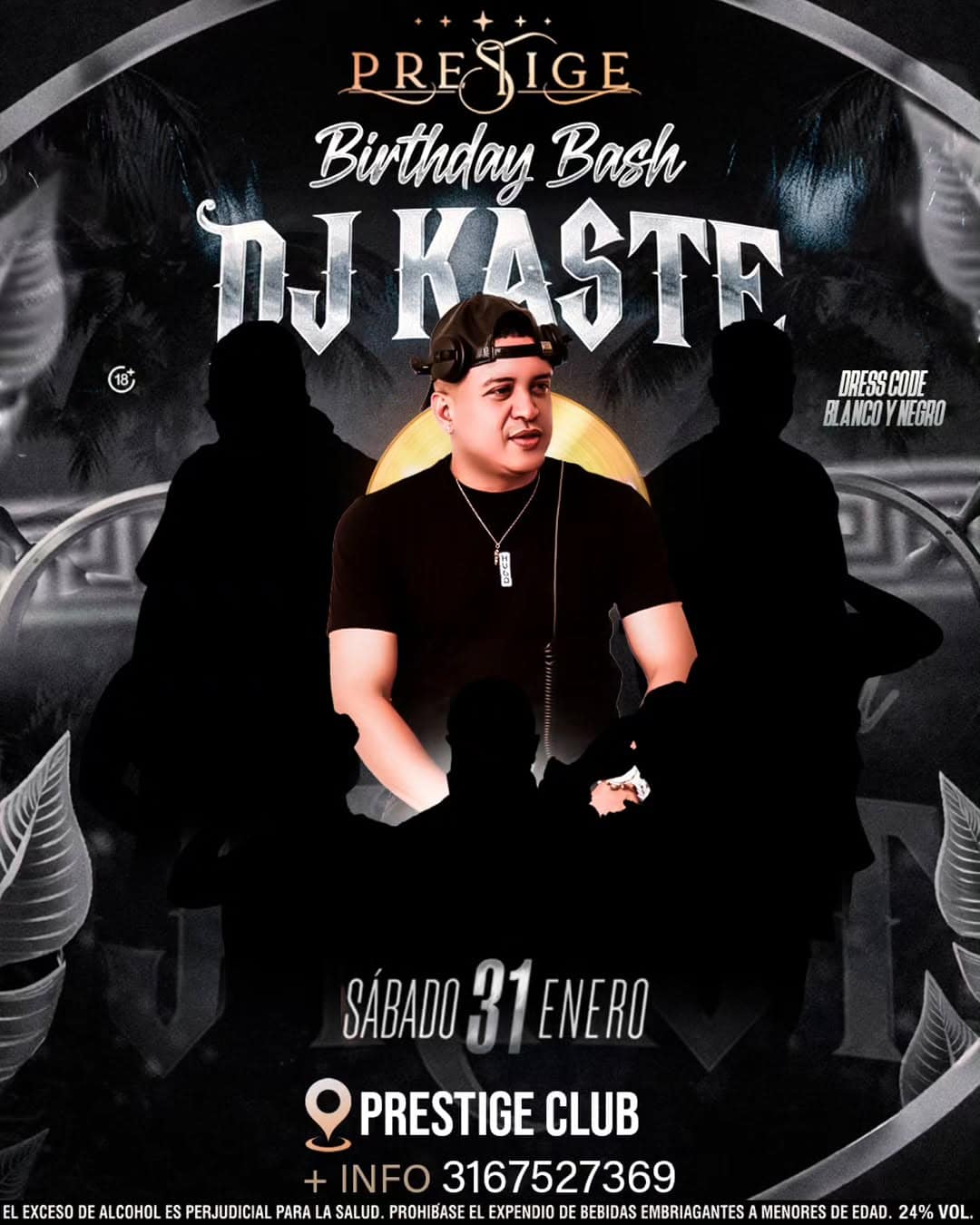 ¡Prepárate para una noche inolvidable en Prestige Club Cartagena! El sábado 31 de enero, celebraremos el cumpleaños de DJ Kaste, uno de los DJs más reconocidos de la escena local. La fiesta promete ser una explosión de ritmos y buena energía. No olvides tu outfit de blanco y negro y ven a disfrutar de una noche llena de música y diversión. ¡Te esperamos!