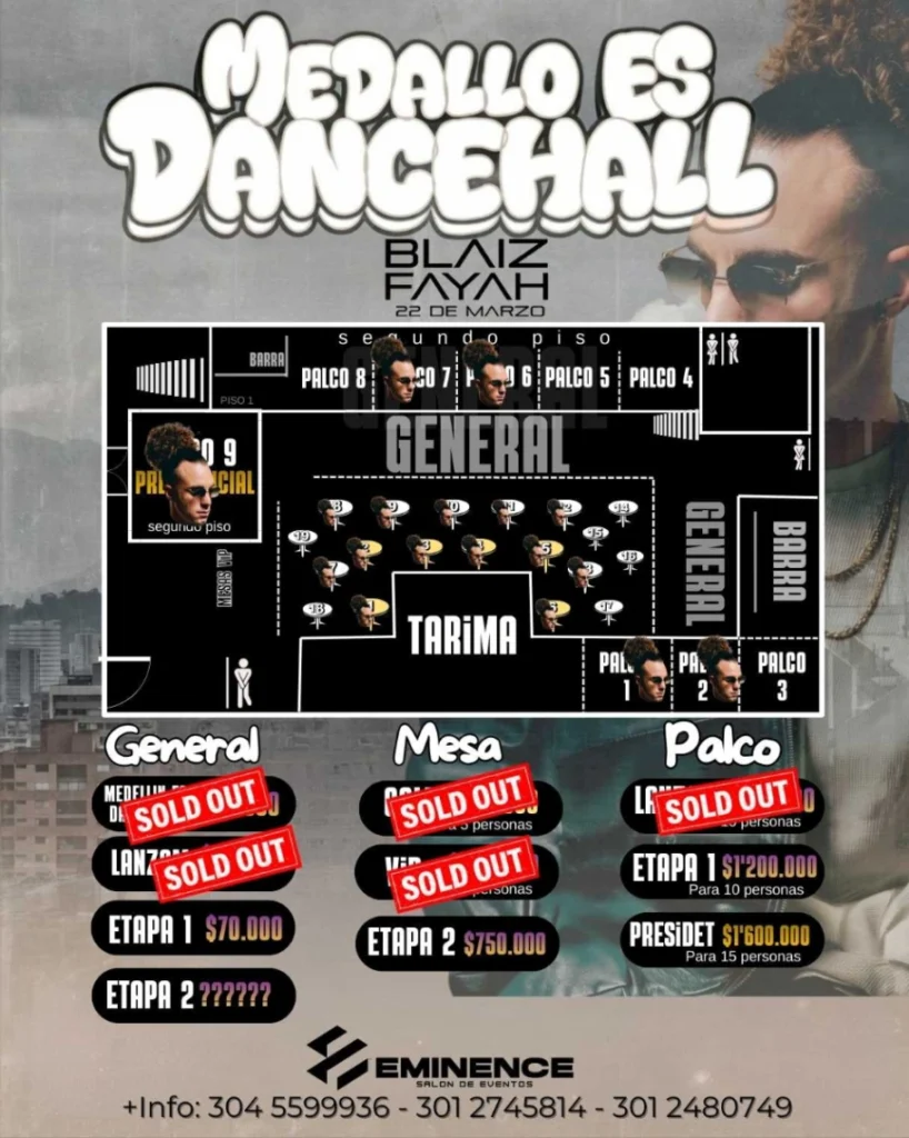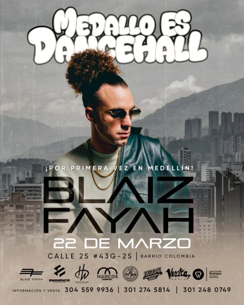 Medallo es Dancehall es un concierto de dancehall y reggae que trae por primera vez a Medellín al artista Blaiz Fayah. Será una noche dedicada a los ritmos caribeños, con una atmósfera fiestera y energética ideal para amantes del dancehall en la ciudad. Un plan perfecto para disfrutar en vivo de este exponente internacional y conectar con la cultura reggae y dancehall en Medellín.