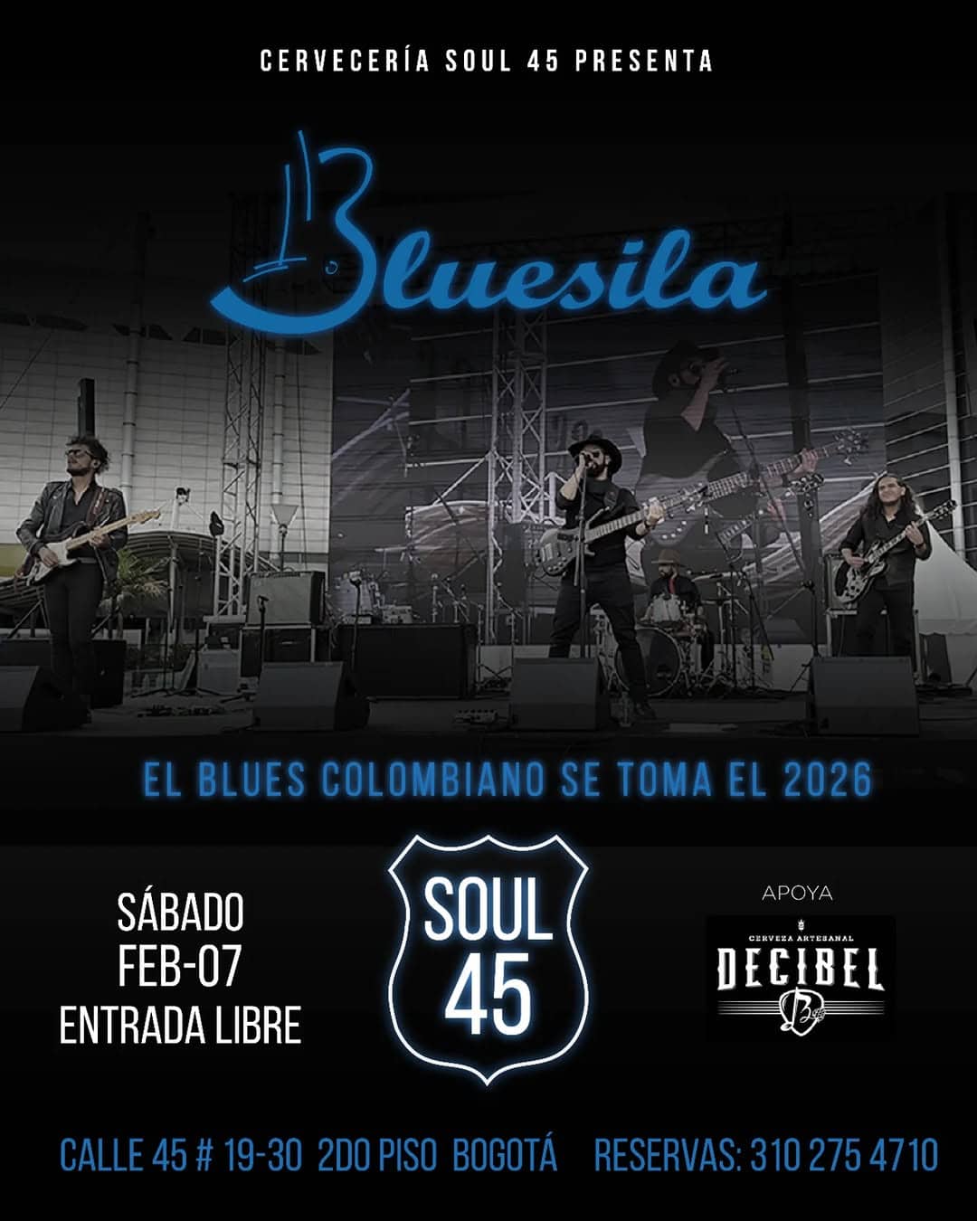 El 2026 se llena de ritmo con el regreso de Bluesila. Este concierto promete una noche llena de sonidos colombianos en el Soul 45, un lugar emblemático de Bogotá. Prepárate para disfrutar de los nuevos lanzamientos de este grupo que ha sabido conquistar el corazón de los amantes del blues. No te pierdas esta oportunidad de vivir una experiencia musical única en la capital colombiana.