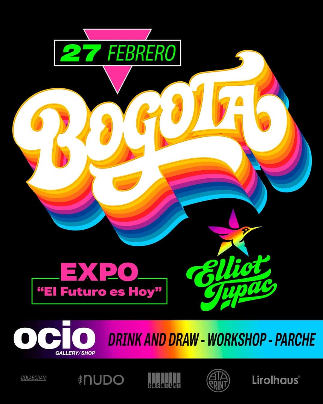 Ven a vivir el futuro en la exposición ‘El Futuro es Hoy’ en Bogotá. Esta exposición, organizada por Elliot Tupac, celebra el color, la gráfica popular y la visión Latinoamericana del mañana. Además, habrá un Drink & Draw, un taller y un parche creativo. No te pierdas esta oportunidad de sumergirte en la cultura y la creatividad en la OCIO Galería.