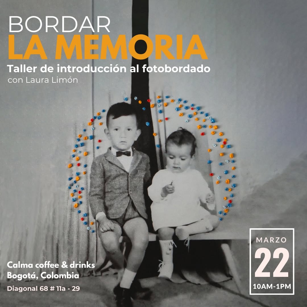 Bordar la memoria – Taller de introducción al fotobordado es una experiencia creativa en Bogotá donde aprenderás a intervenir fotografías con bordado sobre papel. Guiado por Laura Limón en Calma coffee & drinks, este taller cultural propone resignificar y honrar tus recuerdos a través del arte textil y la imagen. Es un espacio íntimo y relajado, ideal para quienes quieren explorar el fotobordado desde cero y conectar con su memoria de forma sensible y artística.