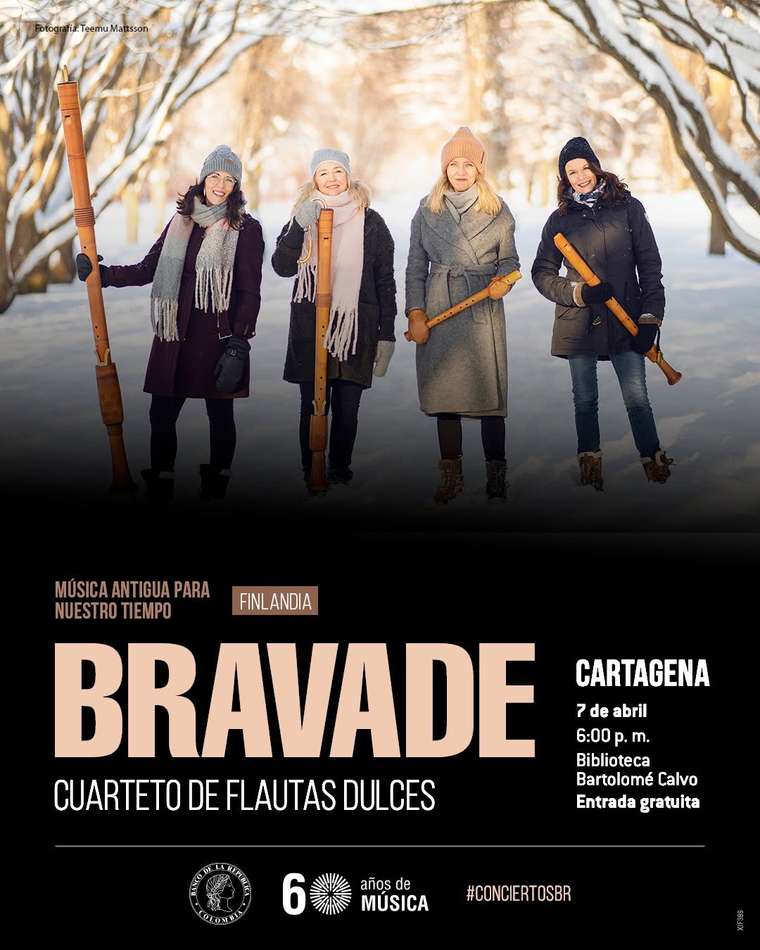 BRAVADE Cuarteto de Flautas Dulces llega a Cartagena con el programa “Música Antigua para Nuestro Tiempo”, un concierto de flautas dulces que viaja del norte de Europa a distintas épocas de la historia. El evento, en el Centro Cultural de Cartagena, incluye una charla previa sobre la evolución histórica de la flauta y rinde homenaje al talento femenino con un repertorio dedicado a compositoras desde el siglo XIII hasta la actualidad.