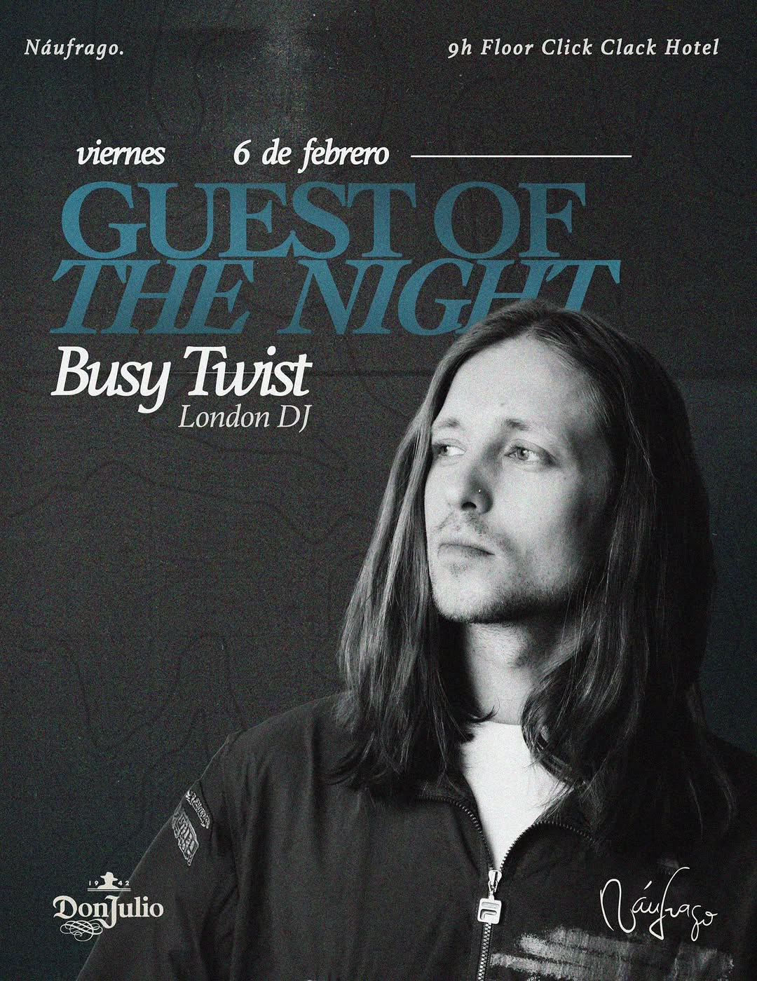Guest of The Night es una noche de fiesta y DJ set curada por el colectivo Náufrago en el Click Clack Hotel, con la presentación de Busy Twist, DJ invitado desde Londres. Este evento ofrece una experiencia clubbing íntima y sofisticada en Bogotá, ideal para quienes buscan sonidos frescos y una atmósfera nocturna cosmopolita en la ciudad.