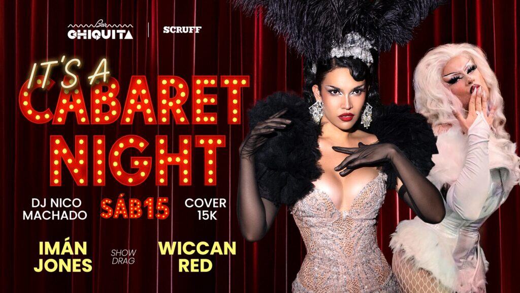 Este sábado 15, prepárate para una noche llena de brillo, sensualidad y mucha actitud en Bar Chiquita. Llega CABARET NIGHT, un espectáculo drag inolvidable con las deslumbrantes Imán Jones y Wiccan Red, que te harán vibrar con cada performance.