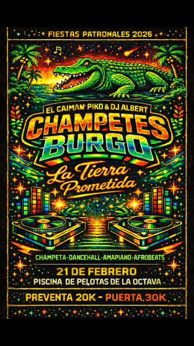 CHAMPETES BURGO llega a La Octava Bar en Medellín como una fiesta patronal dedicada a quienes cumplen años en febrero. Será una noche de champeta, dancehall, afrobeat y sonidos playeros con El Caiman Piko y DJ Albert Latino, en un ambiente picotero y festivo. Un plan perfecto para rumbear con sabor caribeño y celebrar al ritmo de la champeta en la ciudad.