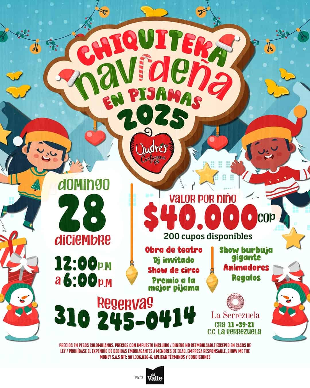 La Chiquiteka Navideña en Pijamas 2025 es un evento lleno de magia y sorpresas para los más pequeños. En La Serrezuela, los niños serán los protagonistas de una tarde llena de risas y momentos inolvidables. Con actividades como un show de circo, una obra de teatro y un show de burbuja gigante, este evento promete cerrar el año con alegría. Además, habrá un DJ invitado y animadores para mantener el ambiente festivo. No olvides llevar tu pijama más cómoda y prepárate para soñar, compartir y crear recuerdos que durarán para siempre.