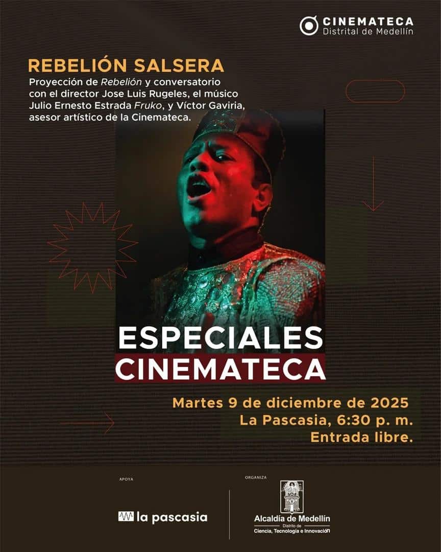 Sumérgete en una velada única donde el cine, la música y la conversación se entrelazan en homenaje a la icónica figura de la salsa: Joe Arroyo. La Cinemateca presenta la proyección del aclamado largometraje “Rebelión”, dirigido por José Luis Rugeles. Al finalizar la proyección, un vibrante conversatorio cobrará vida, con la participación del propio director, el legendario músico Julio Ernesto Estrada “Fruko”, y el cineasta Víctor Gaviria. Una experiencia que revive la esencia de la salsa y la pasión por el cine, no te lo puedes perder.