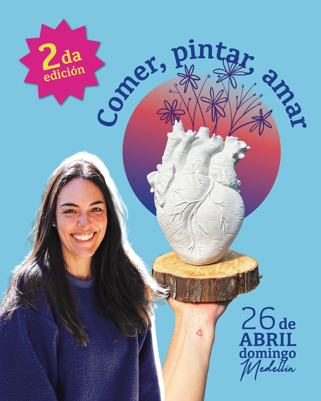 Comer, pintar, amar es un espacio creativo en Medellín que invita a reconectar con lo manual y con el niño interior a través de una actividad artística y sensorial. En esta segunda edición, la artista Aleja Eche propone una experiencia íntima para hacer una pausa de las pantallas, explorar la curiosidad, disfrutar del proceso de pintar y compartir alrededor de la comida en un ambiente relajado y disfrutable.