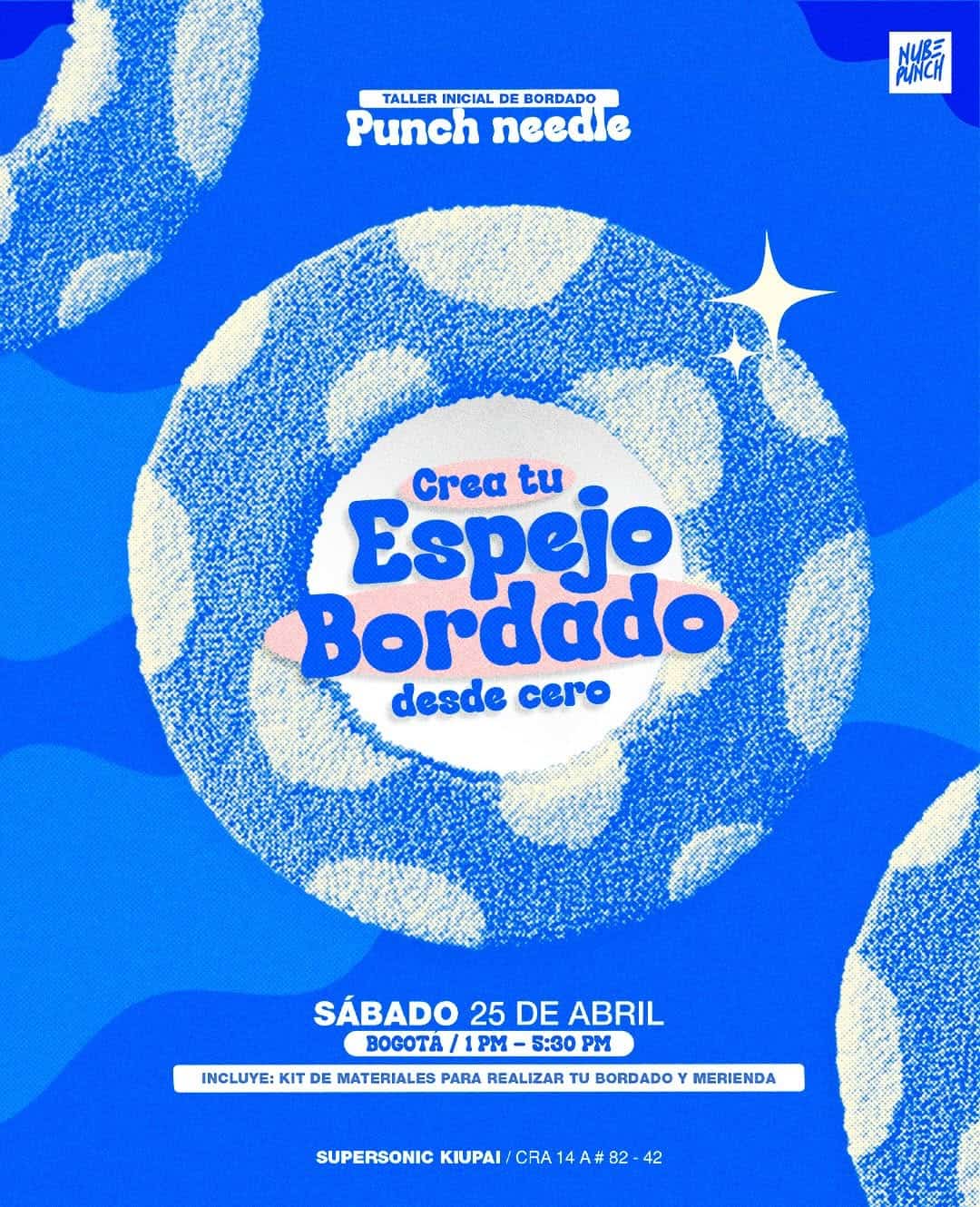 “Crea tu Espejo Bordado desde cero” es un taller inicial de bordado punch needle en Supersonic Kiupai, en Bogotá. Durante una tarde aprenderás paso a paso esta técnica textil mientras elaboras un espejo bordado personalizado, con acompañamiento cercano y todos los materiales incluidos. El espacio incluye merienda y está pensado para disfrutar, crear y relajarse, ideal para quienes quieren iniciarse en el bordado en un ambiente creativo y acogedor.
