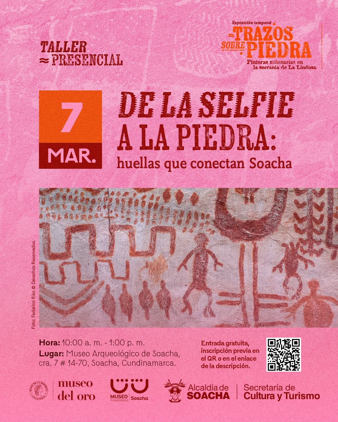 “DE LA SELFIE A LA PIEDRA: huellas que conectan Soacha” es un taller presencial en el Museo Arqueológico de Soacha, cerca de Bogotá, que invita a comparar nuestras selfies y fotos cotidianas con el arte rupestre de La Lindosa. En el marco de la exposición “Trazos sobre piedra”, esta actividad propone reflexionar sobre memoria, territorio e imágenes, y sobre la responsabilidad de cuidar las huellas que dejamos y heredamos.