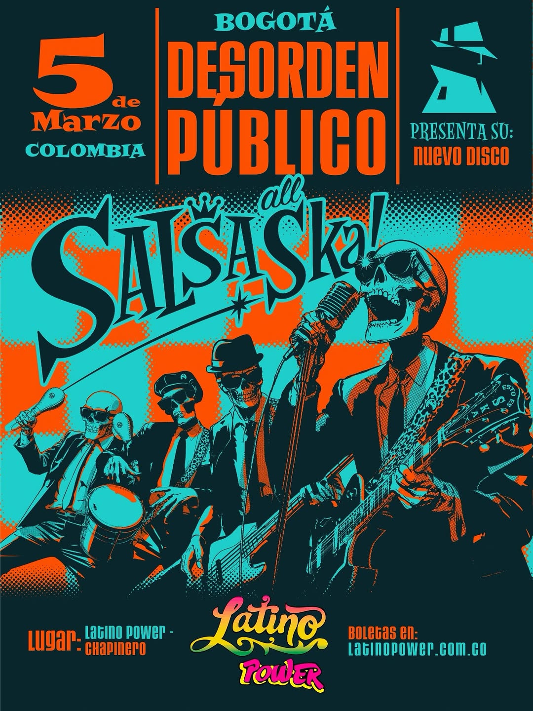 Desorden Público llega a Bogotá para presentar en vivo su nuevo disco Salsa Ska!, en un concierto cargado de energía y fusión entre ritmos salseros y ska. Este evento en Latino Power será una oportunidad para disfrutar de un show potente, cercano y festivo, ideal para quienes aman los sonidos latinos con actitud rockera y una puesta en escena intensa en la ciudad.