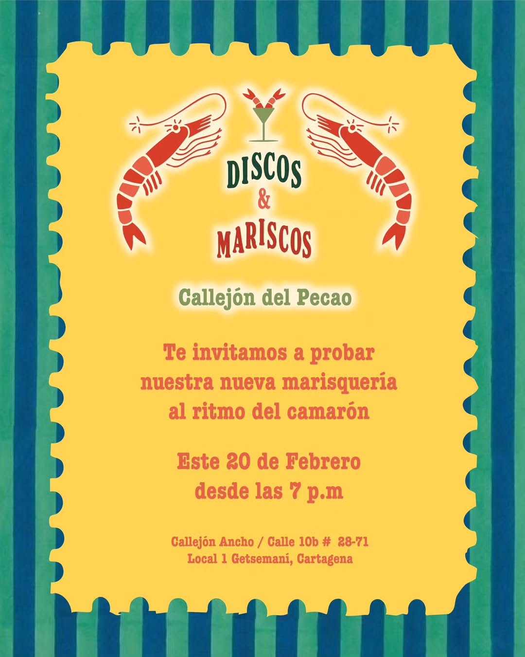 Discos & Mariscos es una apertura especial de marisquería en Cartagena, pensada para amantes de los sabores de mar y de los planes diferentes en la ciudad. En este evento gastronómico, el público podrá disfrutar mariscos en un ambiente relajado y festivo, con música y buena energía en el Callejón Ancho de Getsemaní. Es una invitación para curiosos y conocedores que quieren descubrir un sitio único en Cartagena.