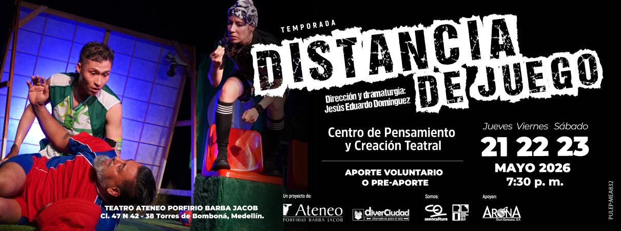 El Teatro Ateneo Porfirio Barba Jacob será el escenario donde el 21 de mayo de 2026 se presentará DISTANCIA DE JUEGO. Este evento promete ofrecer una experiencia única, fusionando talento y emoción en cada acto. Los asistentes podrán disfrutar de una obra que explora las complejidades de la vida y las relaciones humanas, llevando al público a reflexionar y conectar con sus propias experiencias. No pierdas la oportunidad de ser parte de esta propuesta artística que busca despertar sentimientos y crear memorias que perduren en el tiempo.