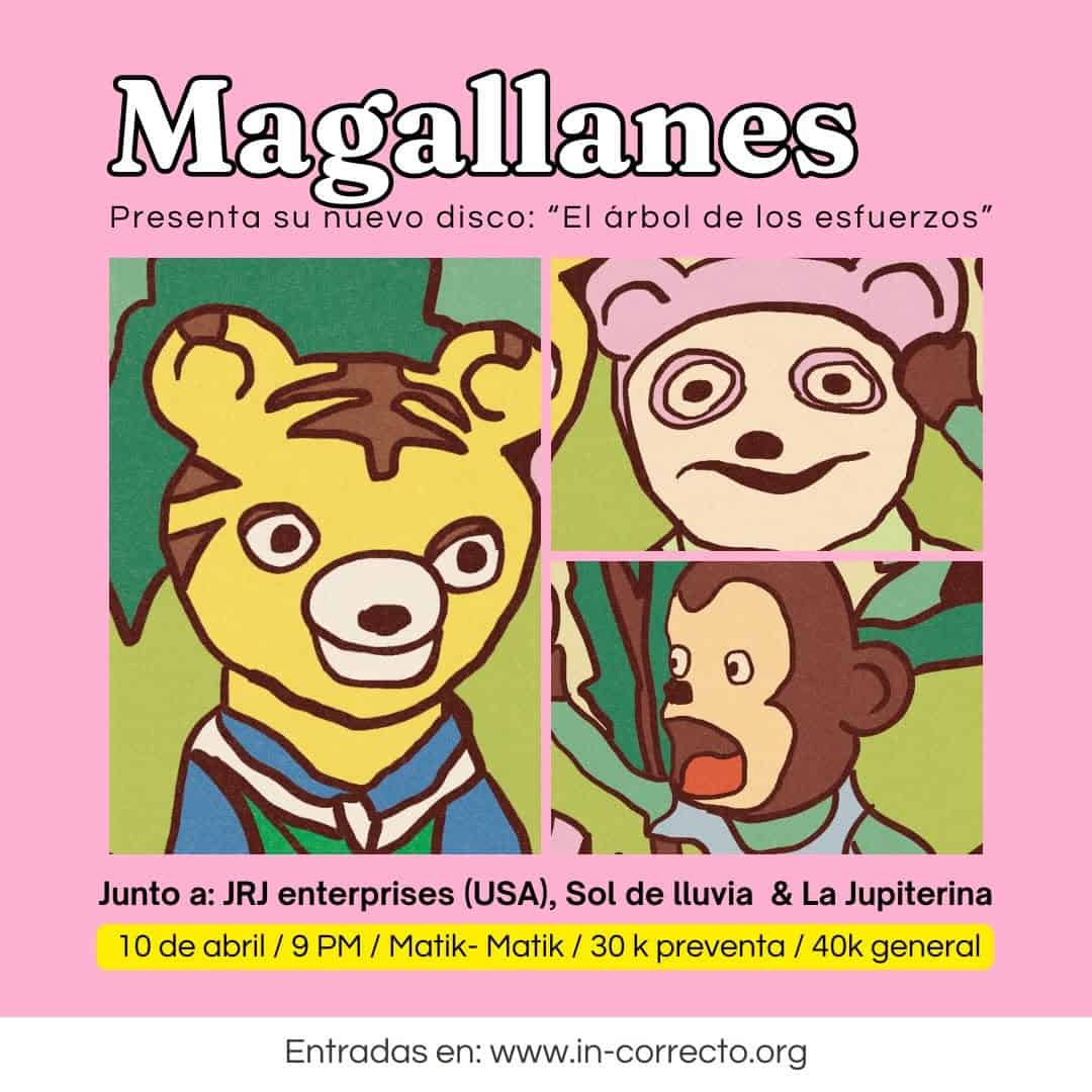 El árbol de los esfuerzos es el nuevo álbum de Magallanes y se presentará en un concierto en vivo en Matik-Matik, Bogotá. Será una experiencia de inmersión sonora donde la banda compartirá escenario con Sol de lluvia, JRJ Enterprises y La Jupiterina, acompañados por una cuidada selección musical en vinilo a cargo de Astrid Ávila. Una noche ideal para descubrir nuevas propuestas de música en vivo independiente en la ciudad.
