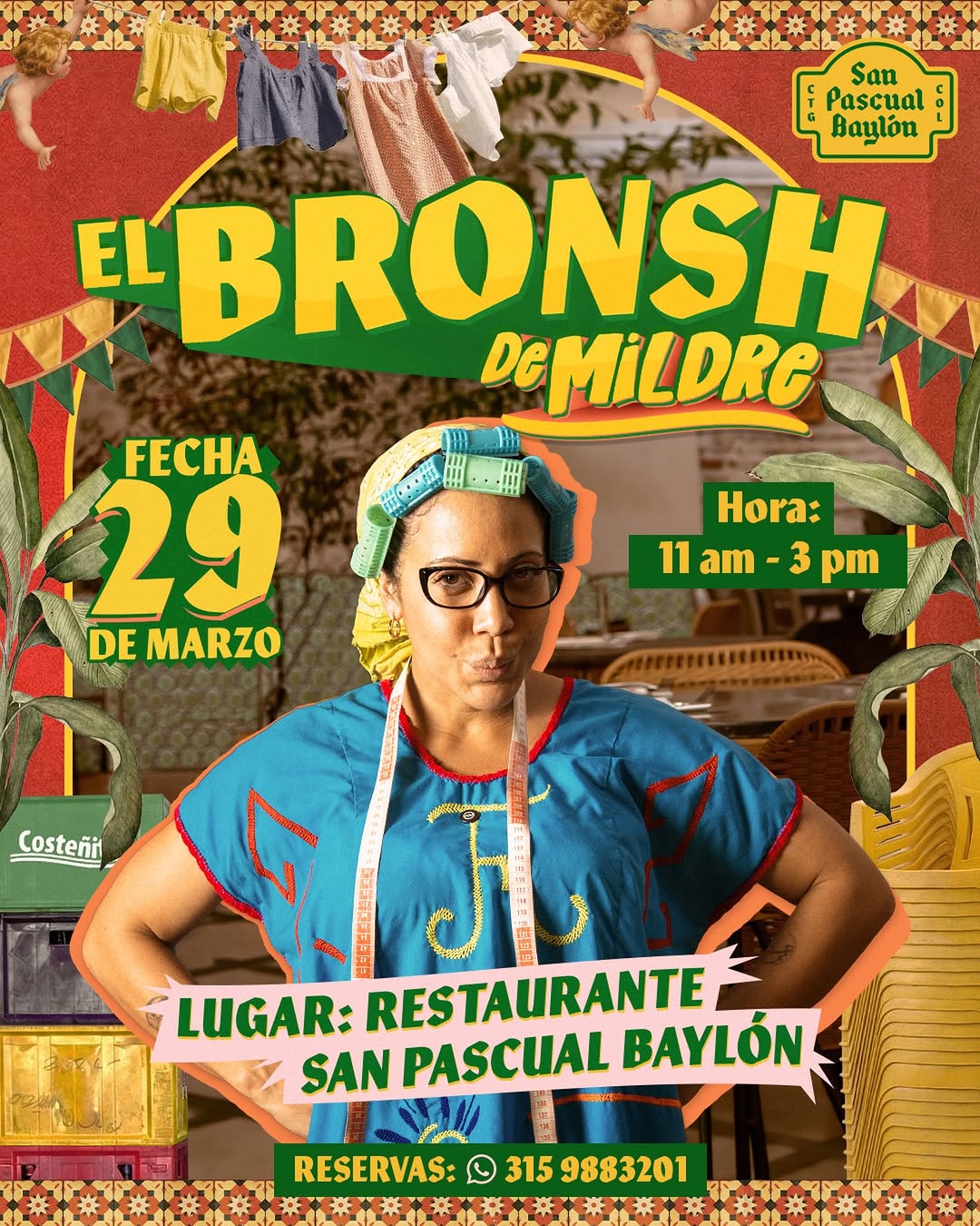 El Bronsh de Mildre es un brunch con sabor caribe que se toma el Restaurante San Pascual Baylón, ideal para disfrutar en familia o con amigos en Cartagena. Habrá fritos tradicionales, platos típicos, postres y Costeñitas ilimitadas para acompañar el parche. Es una experiencia gastronómica relajada y festiva, centrada en la cocina costeña y el buen compartir alrededor de la mesa.