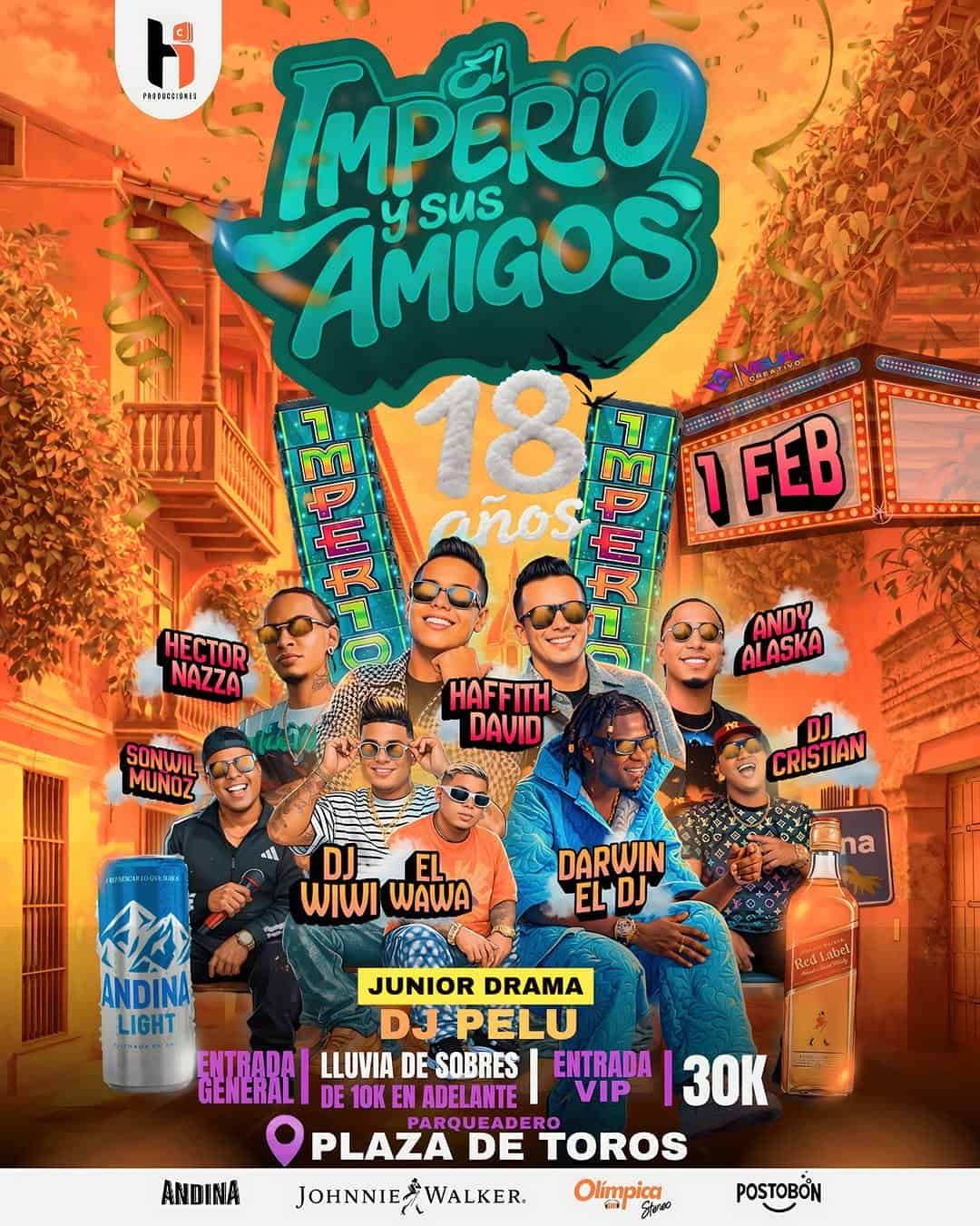 Únete a la celebración de los 18 años de El Imperio en la Plaza de Toros de Cartagena. Este concierto de música urbana y reggaeton contará con la participación de artistas como Hector Nazza, Hafftih David, Andy Alaska, entre otros. Organizado por HD Producciones, este evento promete ser una fiesta inolvidable.