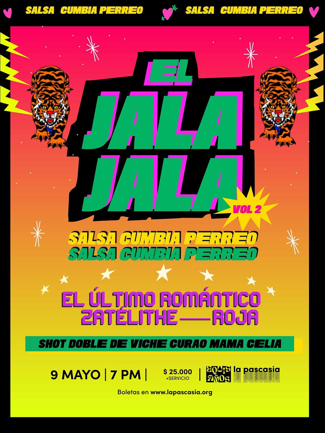 EL JALA JALA VOL 2 regresa a La Pascasia con una noche dedicada a la salsa, la cumbia y el perreo, ideal para quienes buscan un plan de baile intenso en Medellín. En esta fiesta, Zatelithe, El Último Romántico y Roja se encargan de los decks para mantener la pista encendida. Además, habrá shot doble de viche curao Mama Celia para ambientar aún más esta experiencia musical y bailable.