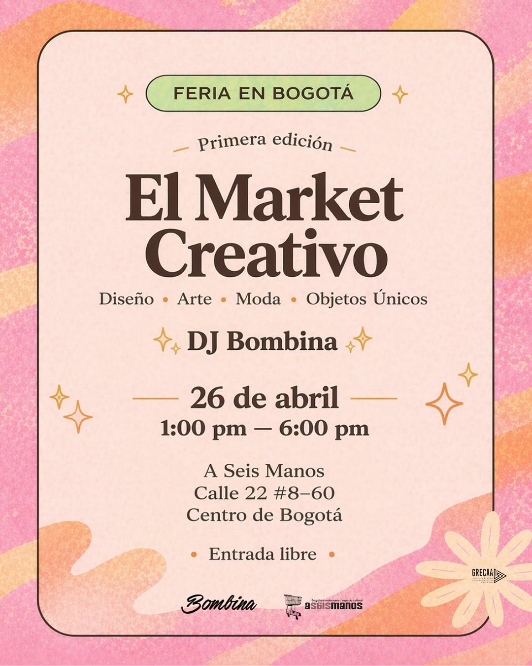 El Market Creativo es una feria en Bogotá donde se reúnen marcas emergentes de ropa, arte, diseño y objetos únicos, con una curaduría enfocada en lo hecho a mano y con amor. En este market podrás descubrir propuestas creativas, apoyar emprendimientos locales y disfrutar la música de DJ Bombina en un ambiente relajado y perfecto para ir en combo a parchar y antojarse de nuevas marcas.