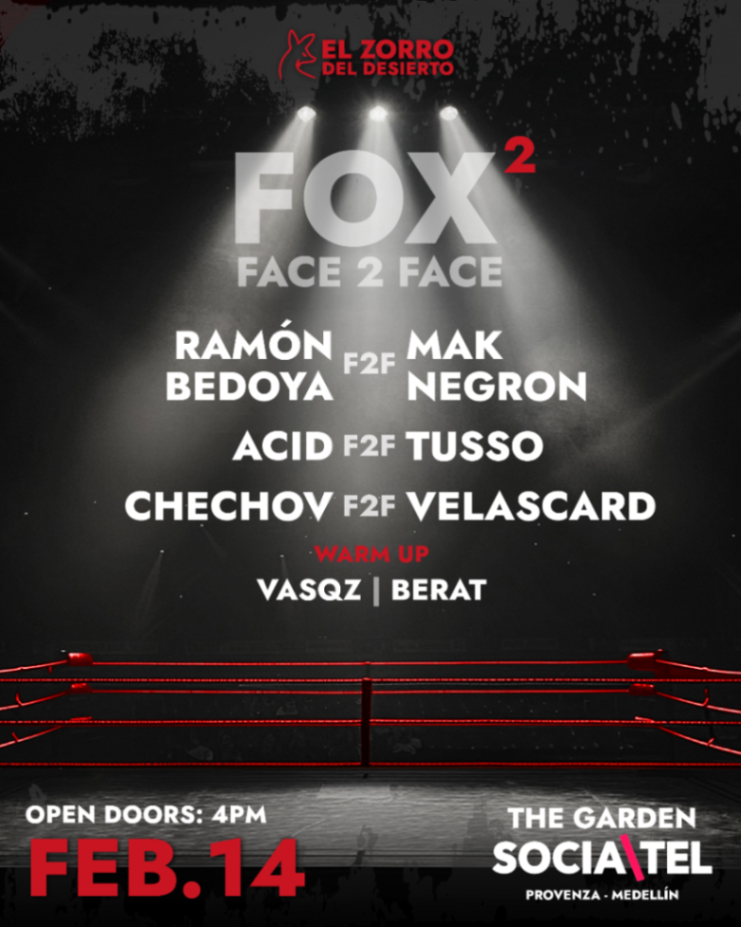 Este sábado 14 de febrero vuelve el Zorro del Desierto a The Garden Provenza Socialtel (Antiguo Selina) para una noche única con el formato europeo que se esta tomando las fiestas del mundo: Face 2 Face. Djs de tech house enfrentados como en un ring de boxeo para saber quien te hace mover más y toda la experiencia de El Zorro del Desierto.
