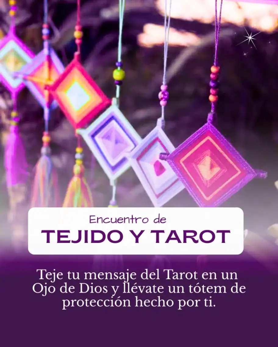 Teje tu mensaje del Tarot en un Ojo de Dios y llévate un tótem de protección hecho por ti.