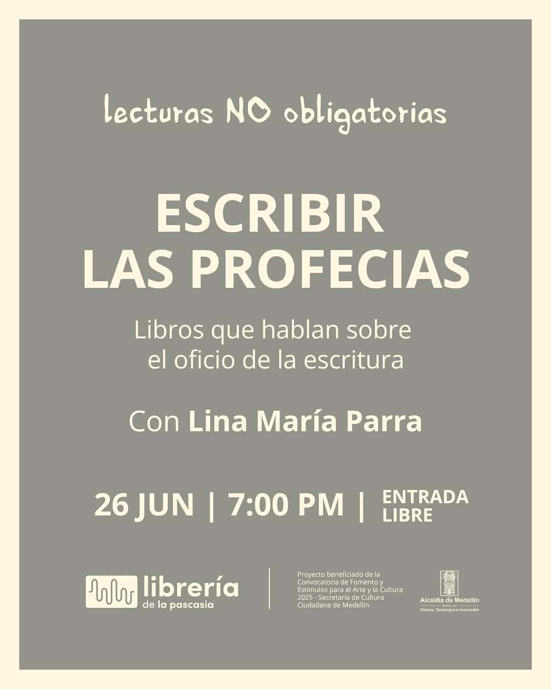 ¡Descubre un evento único en Medellín, Colombia! Este 26 de junio a las 7:00 p.m., únete a la fascinante charla “ESCRIBIR LAS PROFECIAS” con la talentosa Lina Maria Parra. Explora el mundo de la escritura a través de libros que revelan el arte y el misterio detrás de las profecías literarias. Esta conferencia es perfecta para aquellos apasionados por las palabras y la creatividad. ¡No te pierdas esta oportunidad de sumergirte en el universo literario y aprender de una experta en el campo! Ven y disfruta de una velada enriquecedora llena de inspiración. ¡Te esperamos en el lugar indicado para explorar juntos el fascinante mundo de la escritura!