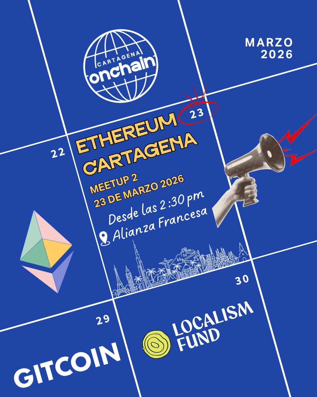 Ethereum Cartagena Meetup 2 es un encuentro tipo meetup en la Alianza Francesa de Cartagena pensado para personas curiosas que quieren entender mejor el ecosistema Ethereum. En este evento se busca conectar, aprender y conocer cómo se está construyendo Ethereum desde el Caribe hacia el mundo, en un espacio cercano y abierto a todo nivel de conocimiento. Ideal para quienes exploran Web3 y quieren hacer networking en Cartagena.