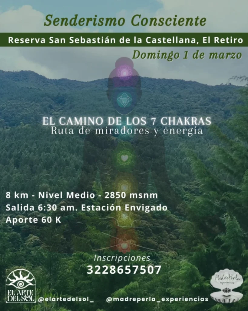 Este será un recorrido especial que te permitirá experimentar la energía de los 7 chakras (principales centros energéticos del cuerpo), mientras asciendes a una altitud de 2.850 m.s.n.m. 🌬️