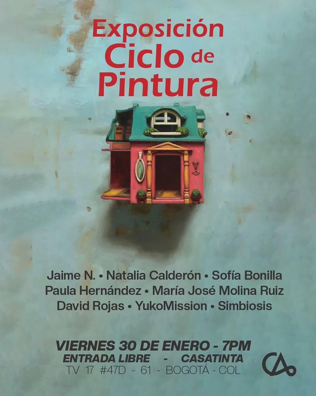 Exposición Ciclo de Pintura es una muestra colectiva de pintura en Casatinta, Bogotá, que reúne obras de artistas como Jaime N., Natalia Calderón, Sofía Bonilla, Paula Hernández, María José Molina Ruiz, David Rojas, YukoMission y Simbiosis. Es una exposición de arte pensada para quienes disfrutan descubrir nuevas miradas y procesos pictóricos contemporáneos en un espacio cercano y creativo.