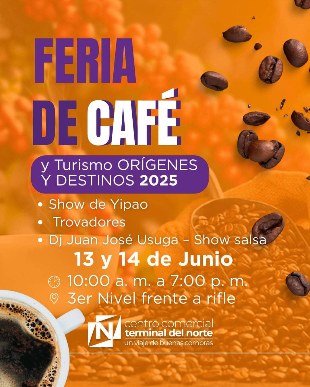Ven y disfruta de la Feria de Café y Turismo Orígenes y Destinos 2025 este 13 y 14 de junio.???? Show de Yipao, trovadores, DJ en vivo y mucha cultura cafetera.