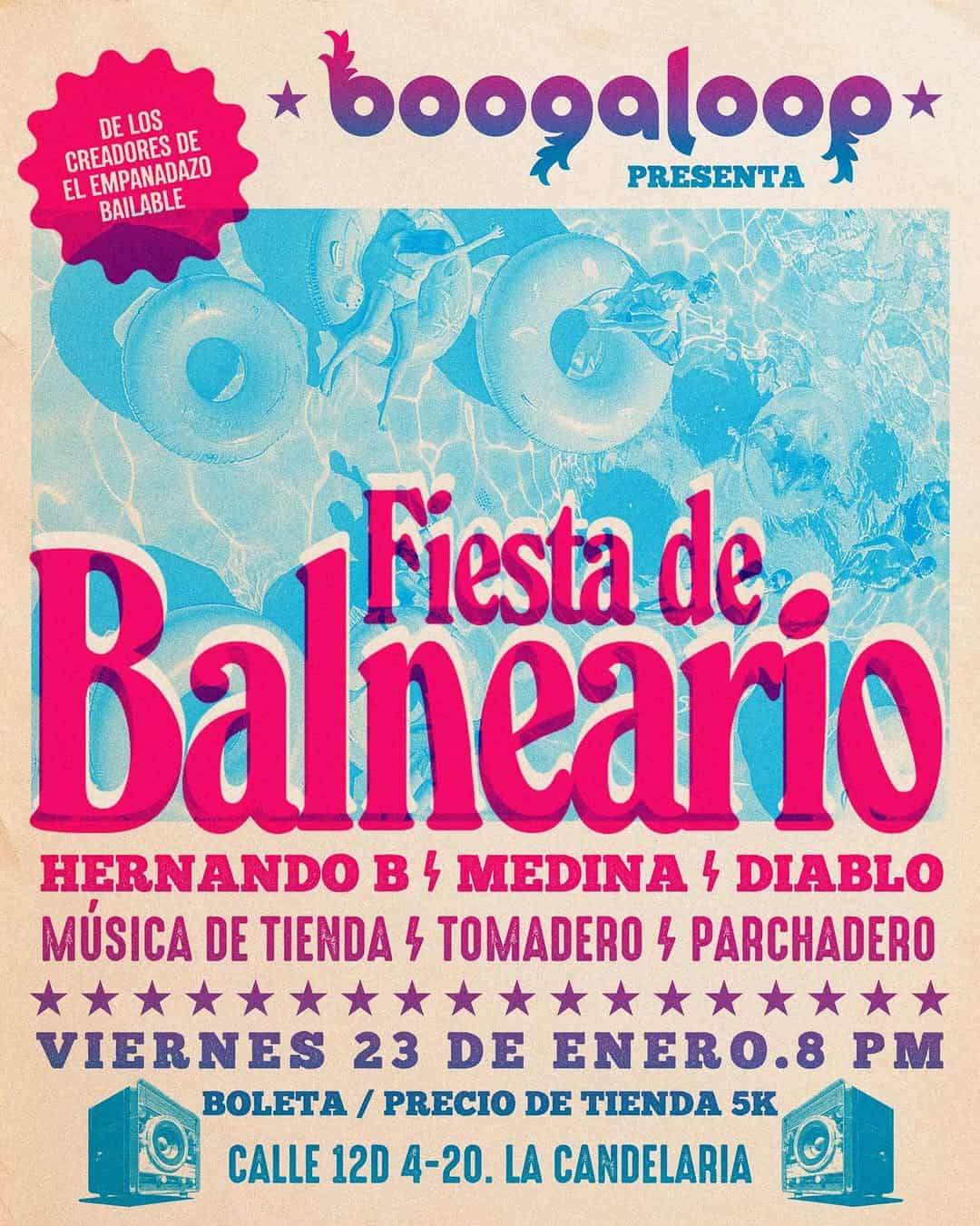 La Fiesta de Balneario, presentada por Boogaloop, promete ser una noche inolvidable en La Candelaria. Con artistas como Hernando B, Medina, Diablo, Música de Tienda, Tomadero y Parchadero, la música y el baile serán los protagonistas. Este evento es una creación de los mismos organizadores de El Empanadazo Bailable, por lo que se espera una gran fiesta llena de ritmo y diversión.