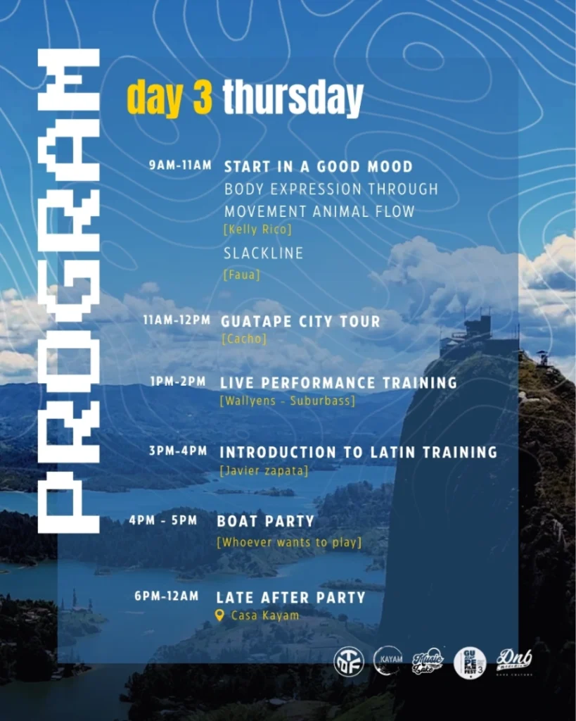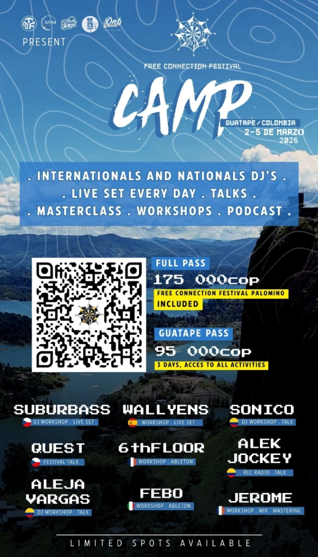 Del 2 al 5 de marzo de 2026, Casa Kayam en Guatapé será el escenario del Free Connection Festival – Camp, un evento único que combina arte, música y conexión. Los asistentes podrán disfrutar de un programa diverso que incluye masterclass, talleres de producción musical con profesionales, introducción al tango y ópera, y mucho mas.