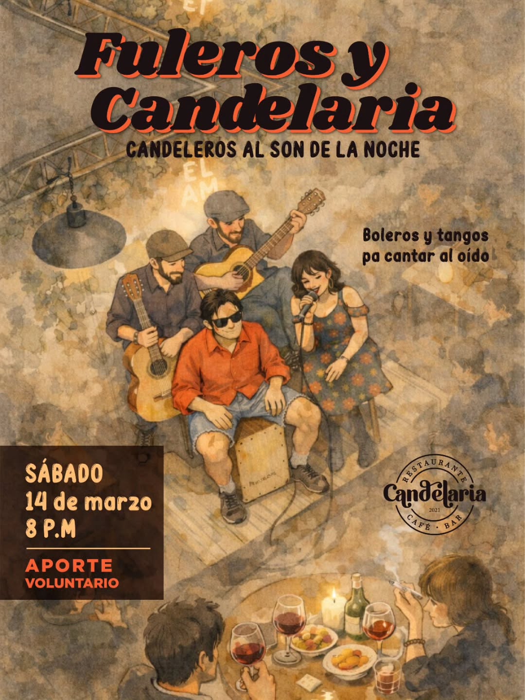 Fuleros y Candelaria es un concierto íntimo de boleros y tangos en Candelaria Café Bar Medellín, ideal para quienes disfrutan cantar despacio y sin afán. En este evento musical la noche se llena de nostalgia, letras románticas y melodías para compartir de cerquita. Una experiencia perfecta para amantes de la música clásica latinoamericana que buscan un plan tranquilo y acogedor en Medellín.