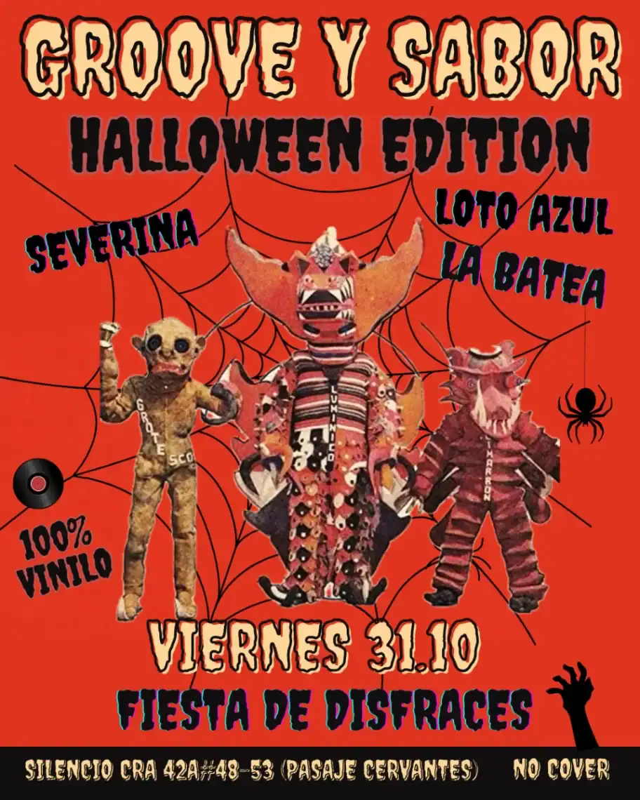 Nos vemos en Silencio Bar (Pasaje Cervantes, Cra 42A #48-53) desde las 9pm, para una fiesta de disfraces 100% vinilo 🕸️