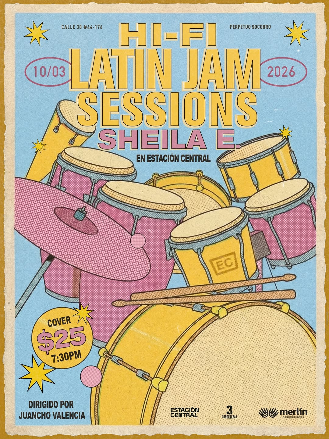 HI-FI Latin Jam Sessions presenta una edición especial dedicada al poder femenino, con la reconocida percusionista Sheila E. tomando la tarima en Estación Central. Este Latin jam en Perpetuo Socorro reúne la energía del jazz latino y la improvisación en vivo, creando una experiencia íntima y vibrante para amantes de la música en Medellín. Un espacio para disfrutar grooves latinos, interacción con el público y una noche de alta calidad musical.