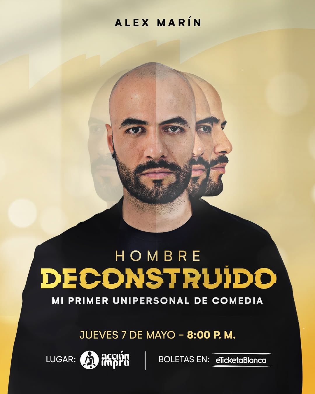 HOMBRE DECONSTRUIDO MI PRIMER UNIPERSONAL DE COMEDIA es el debut en solitario de stand up de Alex Marín, un show íntimo y honesto sobre hombres que expresan sus emociones, entienden indirectas y se alejan de la ley del hielo. Este unipersonal de comedia en Acción Impro invita a compartir un momento cercano con el comediante y su proceso creativo, en una noche especial para el artista y el público en Medellín.