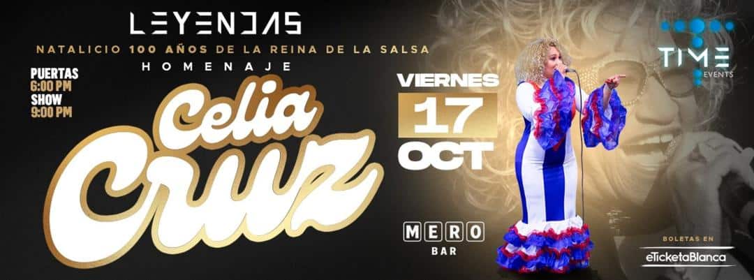 No te pierdas esta noche de pura alegría, ritmo y sabor en un emotivo Homenaje a Celia Cruz, la inigualable Reina de la Salsa, conmemorando el centenario de su natalicio. Este evento promete un show vibrante con los grandes éxitos de la artista que pondrán a bailar a todos. Es la oportunidad perfecta para revivir el legado musical de una de las figuras más importantes de la música latina. ¡Prepárate para gritar ‘Azúcar!’ y sumergirte en una experiencia inolvidable llena de energía y pasión por la salsa! Ven y celebra con nosotros este tributo único el 17 de octubre de 2025 a las 9:00 p. m.
