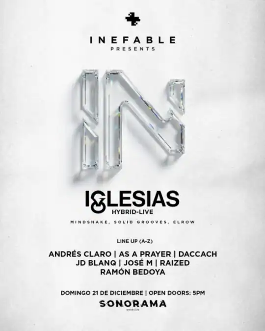 INEFABLE Label aterriza en Sonorama con la presentación especial de IGLESIAS, uno de los nombres más sólidos del tech house actual, un artista cuyo groove se siente desde el primer golpe de ritmo.