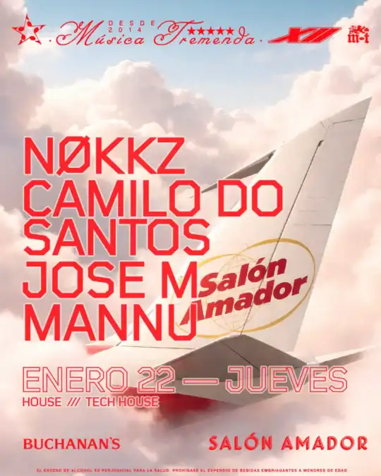 Nokkz y Camilo Do Santos marcan el pulso desde temprano, Jose M sube la intensidad con un set más directo y Mannu se encarga del cierre con ritmo firme y pista encendida hasta el final.