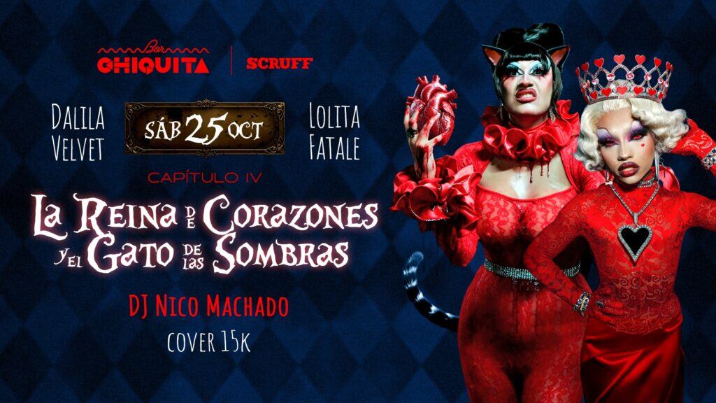 ❤🐈⬛ ¡Cuidado con perder la cabeza! Este sábado 25 de octubre, el reino de Bar Chiquita se tiñe de rojo intenso con el Capítulo IV: La Reina de Corazones y el Gato de las Sombras.