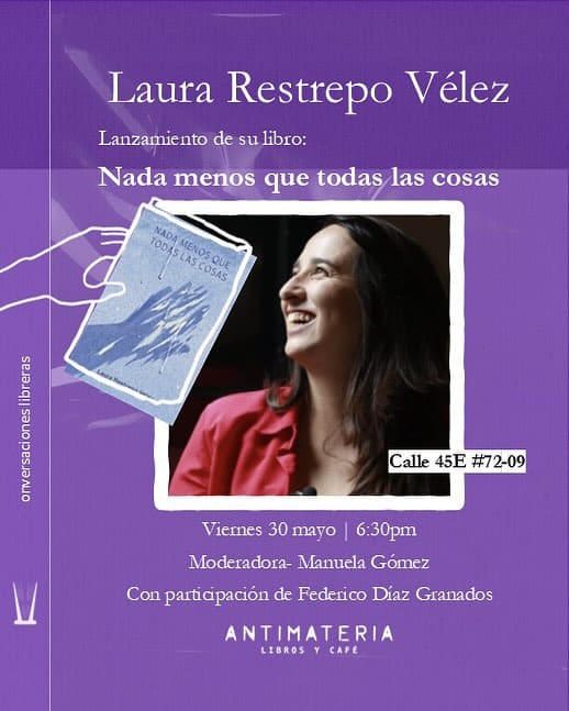Te invitamos este viernes a celebrar el lanzamiento del libro Nada menos que todas las cosas de Laura Restrepo Vélez @laura.restrepovelez.7 editado por Valparaíso @valparaisoediciones ✨
