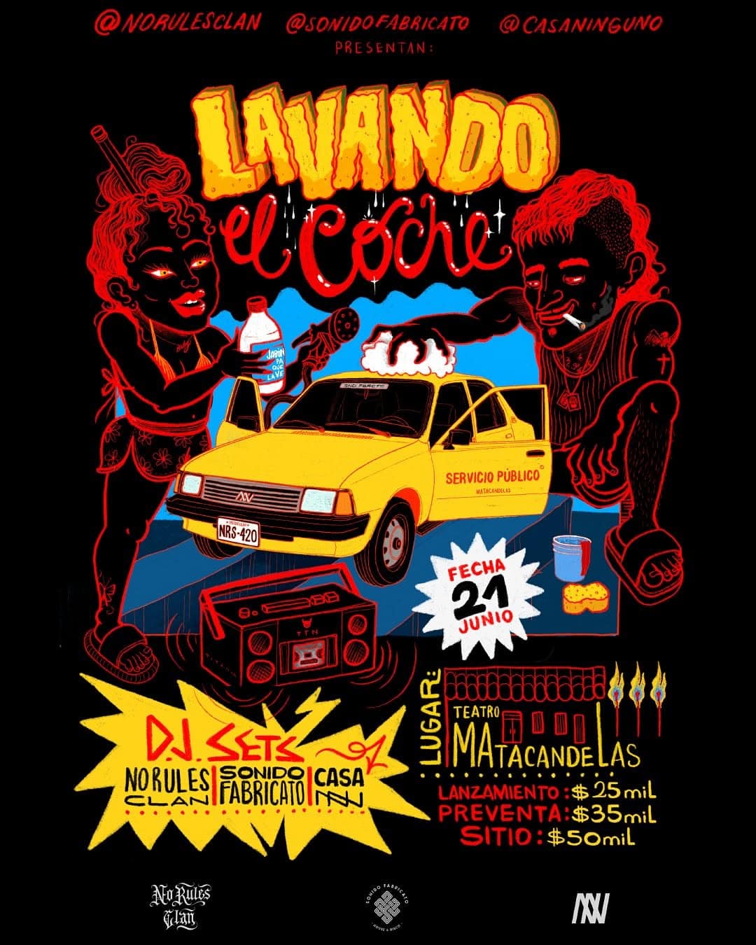 ¡Caiga este 21 de junio y párchese a sobarlo con los temas pa’ lavar el coche! La música estará a cargo de No Rules y Sonido Fabricato. ¡No te pierdas esta fiesta llena de ritmo y diversión!