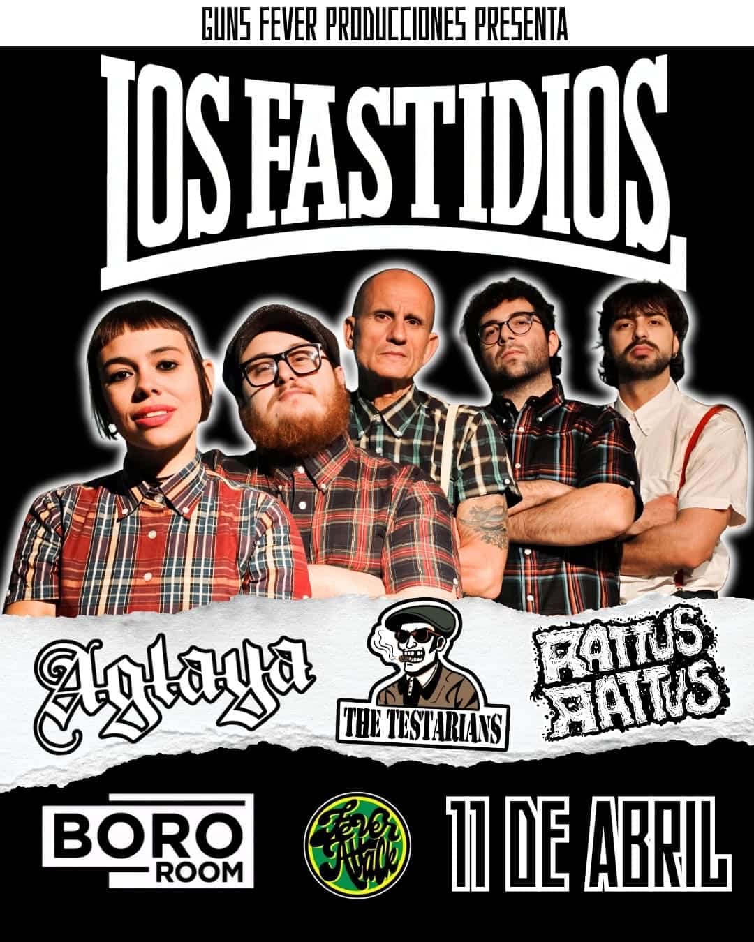 Prepárate para una noche histórica de ska punk en Boro Room con la banda principal Los Fastidios, directamente desde Italia. Este concierto también contará con la participación de bandas nacionales de lujo como Aglaya, The Testarians y Ratus Ratus. No te pierdas esta oportunidad única de disfrutar de un sonido contundente y acelerado que te hará bailar toda la noche.
