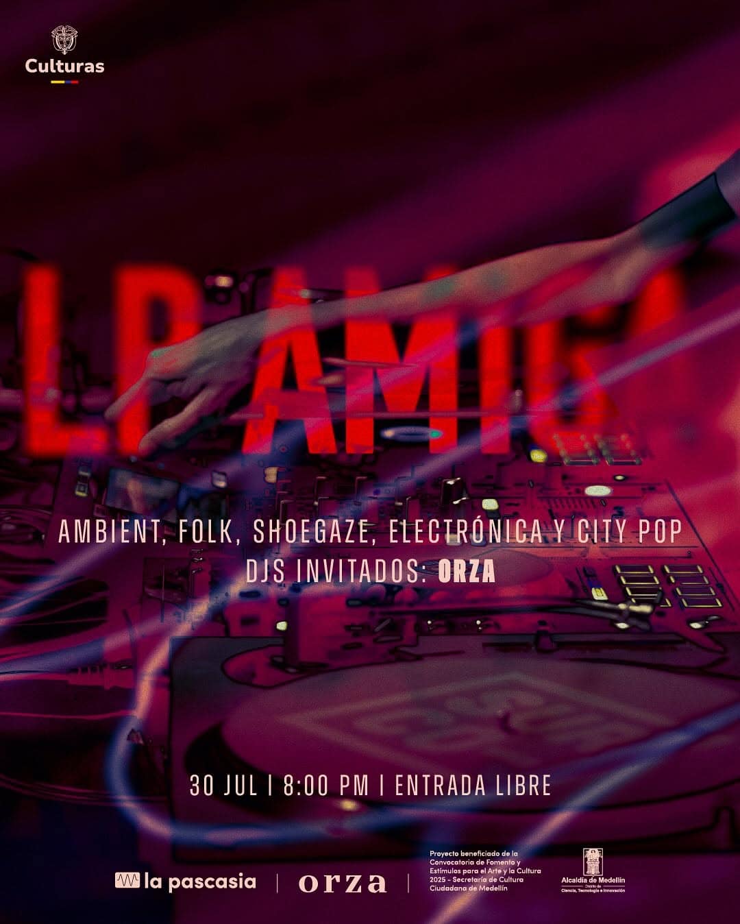 ¡Prepárate para disfrutar de una noche llena de música en Medellín! El próximo miércoles, LP Amiga llega con su versión ambient, folk, shoegaze, electrónica y city pop. La música será curada por gente de la casa: Orza, los del estudio de grabación del tercer piso. ¡No te pierdas este evento el 30 de julio a las 20:00 hasta las 04:00! Ven y disfruta de una mezcla única de géneros musicales en un ambiente inigualable. ¡Te esperamos para vivir una experiencia musical inolvidable en Medellín!