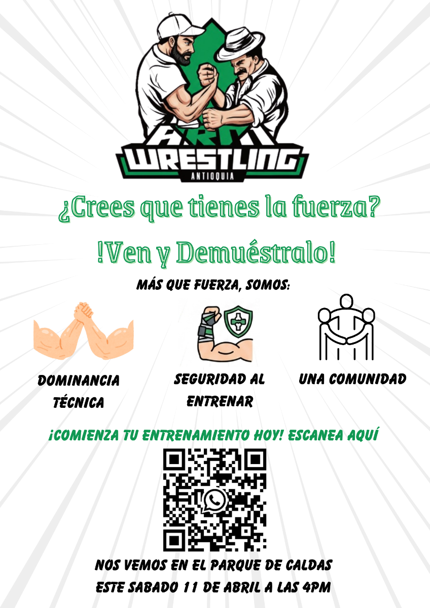 El club Arm Wrestling Antioquia(Sur) invita a todos los apasionados por la fuerza y la disciplina a un encuentro épico de lucha de brazos.